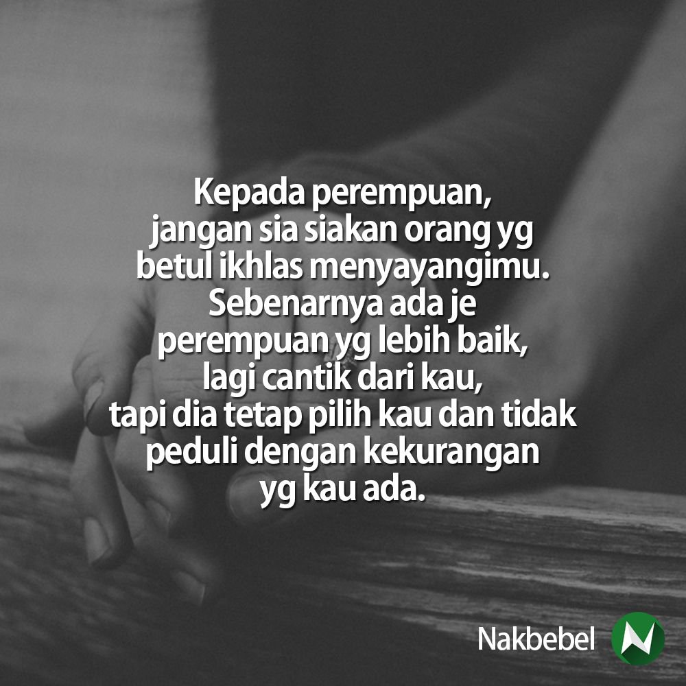 Jangan sia-siakan orang yang sayang sama padamu yang peduli sama kamu yang baik sama kamu yang berusaha membuatmu bahagia dan belum tentu esok dia masih ada untukmu 44. Watch popular content from the following creators. Dan janganlah sia2kan seseorang yang menyayangimu saat ini dan mencari yg lebih baik Karena waktu tak akan pernah kembali.